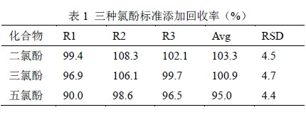 利用實(shí)驗(yàn)室分析儀器睿科Auto SPE-06C 全自動(dòng)固相萃取儀和Waters Sep-pakC18 固相萃取柱分析飲用水中3 種氯酚類,取得較好的結(jié)果。在10μg/L 的加標(biāo)水平下,二氯酚,三氯酚,五氯酚的回收率在90-109%之間,RSD(n=3)在4-5%之間。